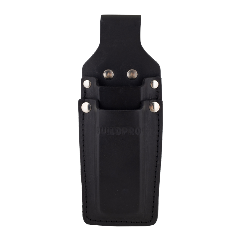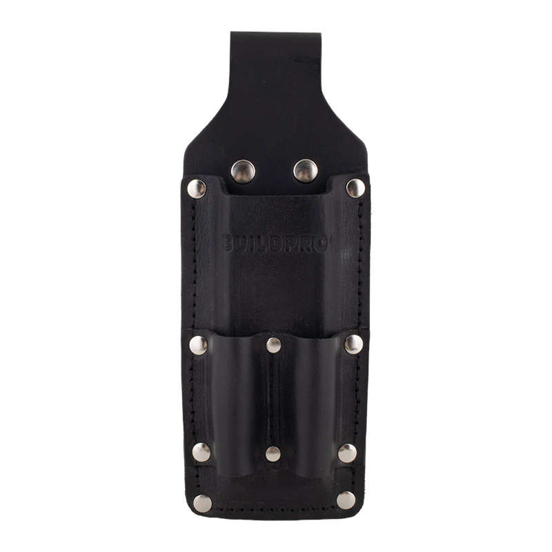 The Buildpro Square Holder is crafted from thick, premium full-grain leather, ensuring long-lasting durability. Designed to hold your combination square securely, it features heavy-duty poly-thread stitching and German/Italian rivets that are pressure-fitted for added strength. Each holder is hand edge-dyed and hand-finished to ensure a refined look and feel. Individually inspected for quality, this holder provides reliable tool storage and easy access.