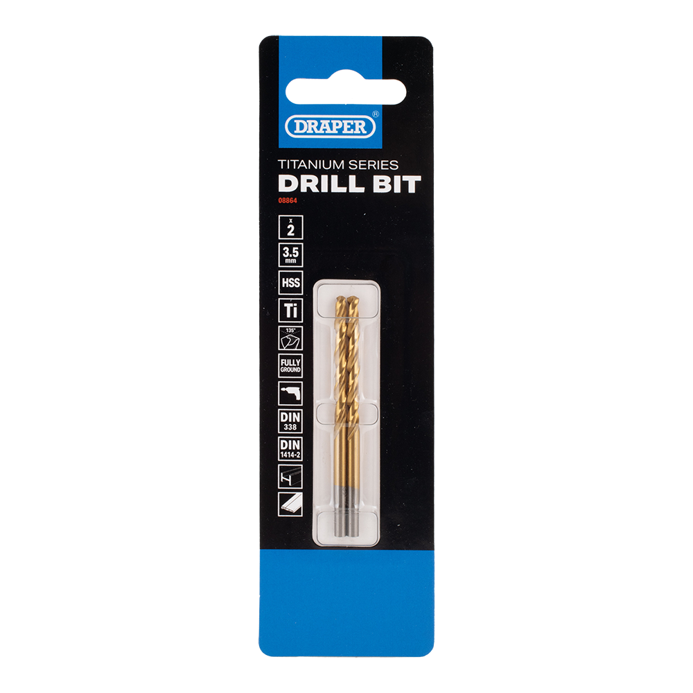 DRAPER HSS Titanium Drill Bit (3.5mm x 70mm) - 2 Pack