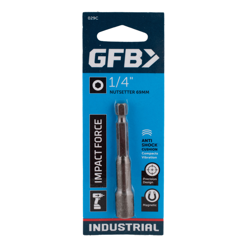 GFB Industrial Tough nutsetters are specifically designed & manufactured to Australian conditions. Rare earth magnets have been used, which means that they are stronger and last longer than standard magnets. GFB nutsetters have a registered design incorporating an anti shock cushion to combat vibration and preserve the integrity of the magnet. Constructed from high tensile steel, GFB nutsetters provide robust performance. The 1/4" hex shank is designed to withstand impact force, making these tools ideal for heavy-duty applications.