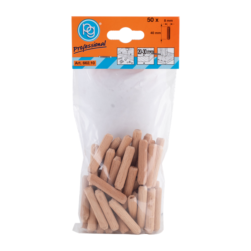 PG PROFESSIONAL 8mm Fluted Wooden Dowels - 125 Pack