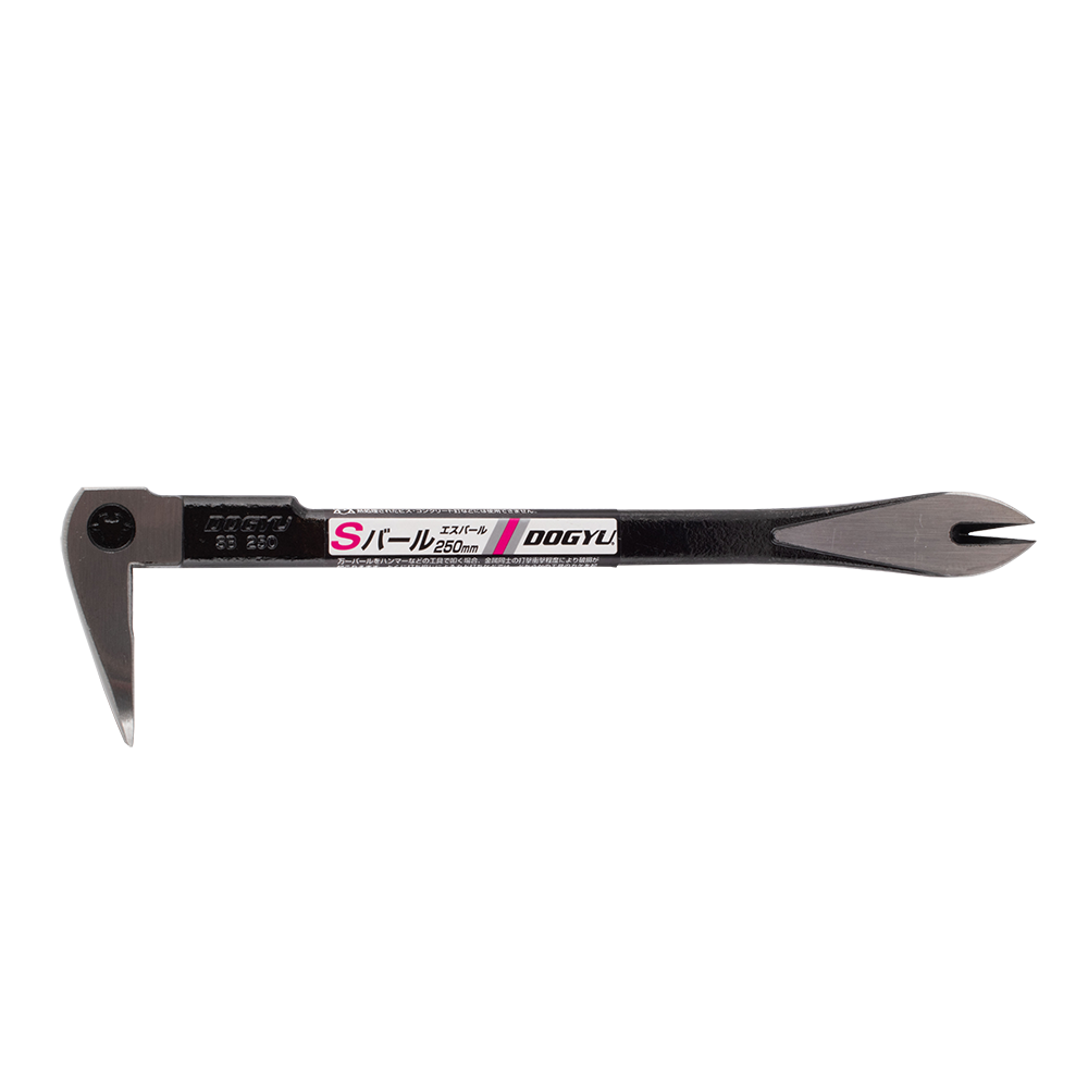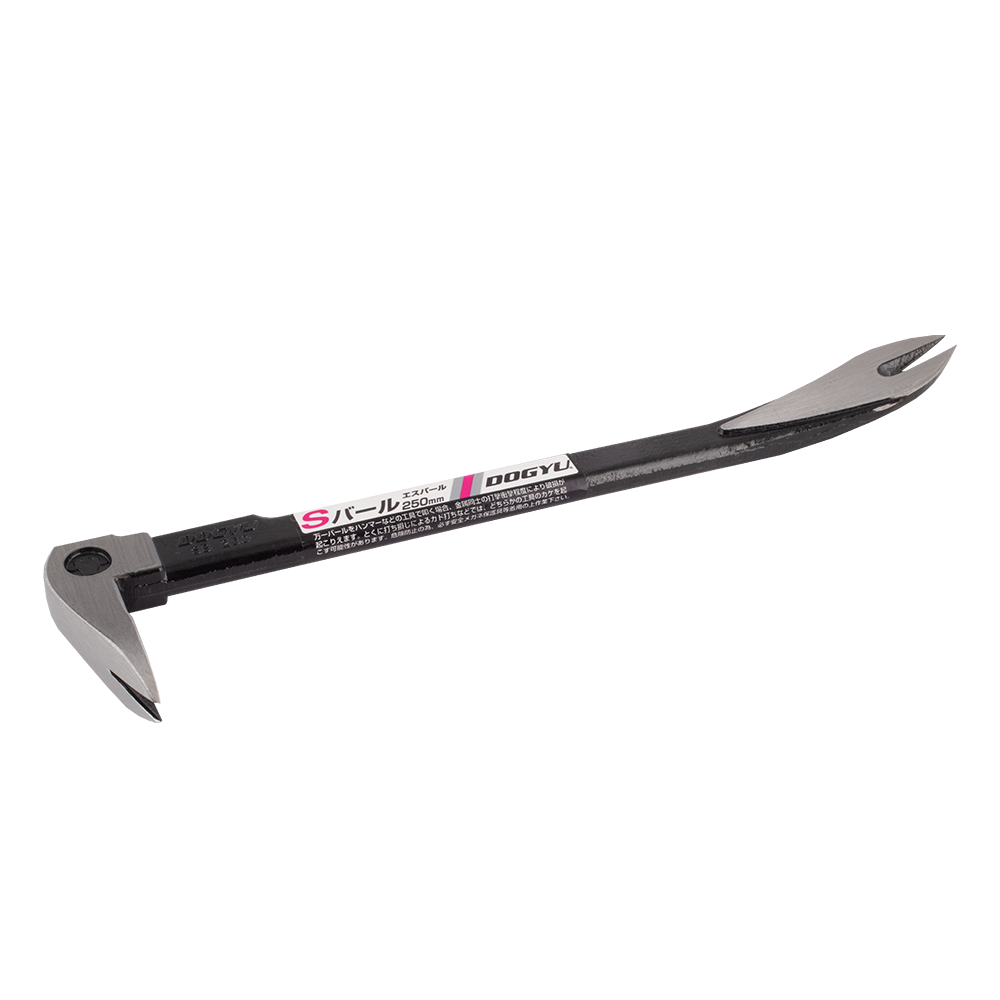 The Dogyu S-Bar Nail Puller is an excellent and efficient tool for removing nails. It is made of drop-forged and tempered steel, which gives it the necessary strength to handle tough jobs. The nail puller is designed to allow users to pull nails using either the 90° angled claw end or the special durable slim claw end, which is particularly helpful when working in tight spaces. The rounded design on each end of the nail puller improves leverage and makes it easier to remove nails. Additionally, the solid flat surface on the back of the head can be used as a hammer to pound nails. This versatile tool is made in Japan and is built to last. This product is manufactured for the purpose of removing nails, but cannot be used for heat-treated screws or concrete nails. Be sure to wear safety glasses.