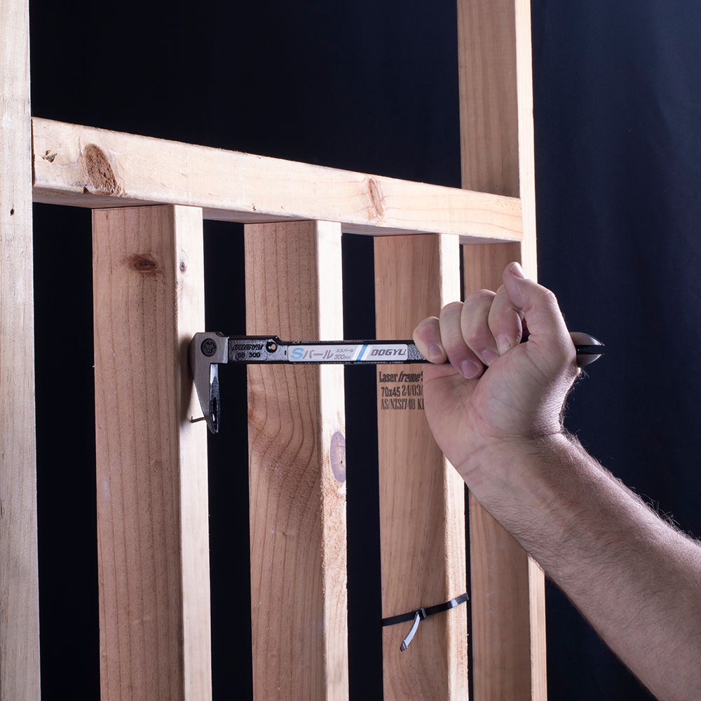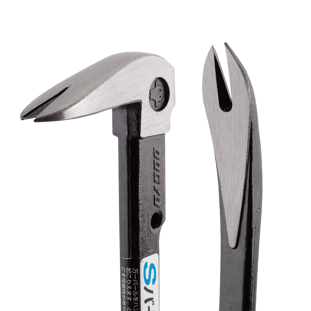 The Dogyu S-Bar Nail Puller is an excellent and efficient tool for removing nails. It is made of drop-forged and tempered steel, which gives it the necessary strength to handle tough jobs. The nail puller is designed to allow users to pull nails using either the 90° angled claw end or the special durable slim claw end, which is particularly helpful when working in tight spaces. The rounded design on each end of the nail puller improves leverage and makes it easier to remove nails. Additionally, the solid flat surface on the back of the head can be used as a hammer to pound nails. This versatile tool is made in Japan and is built to last. This product is manufactured for the purpose of removing nails, but cannot be used for heat-treated screws or concrete nails. Be sure to wear safety glasses.