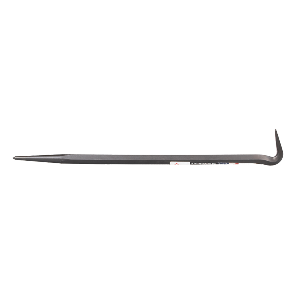 Rolling Head Pry BarLong tapered end for aligning and adjusting metal or wood. 90 degree angled chisel end for extra leverage when prying. Rolling head provides extra leverage and helps dislodge heavy items. Available in variable lengths for applications in hard-to-reach locations. Black oxide finish for additional rust protection.