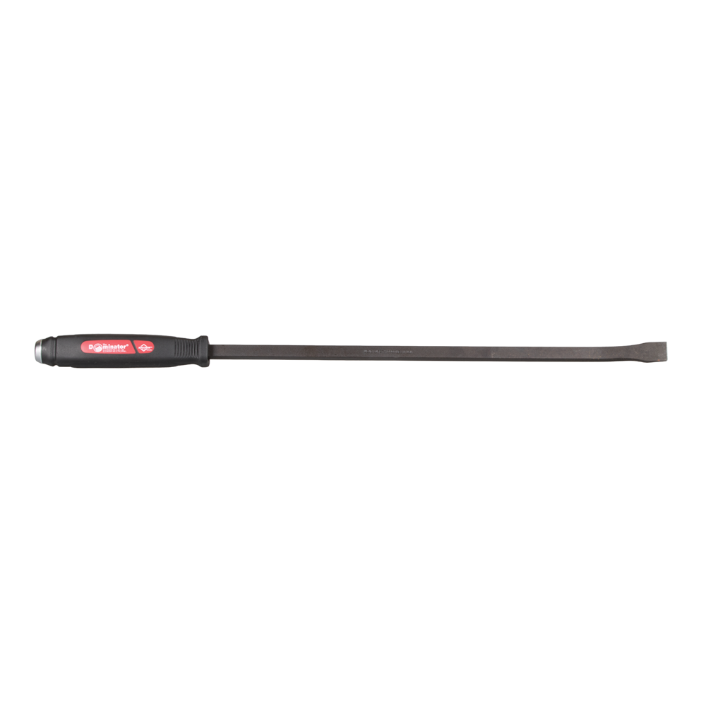 Square section pry bar with a bent chisel end fitted with a comfort grip screwdriver handle with a hard steel striking cap. Used for general prying and levering applications in the automotive and engineering industries
