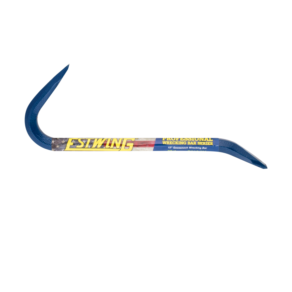 Estwing’s Gooseneck Wrecking Bars are forged from a single piece of American steel, delivering outstanding durability and strength for tough demolition work. Designed with a high-leverage gooseneck shape, they maximise torque to outperform standard crowbars when pulling nails or prying boards. One end features an angled chisel for effective lifting and prying, while the opposite end is slotted to grip and remove nails with ease. A durable blue powder-coated finish helps protect against corrosion and wear, ensuring lasting performance on the jobsite. Made in the U.S.A.