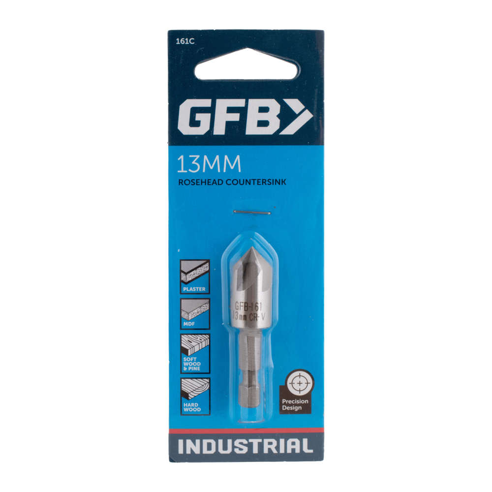 The GFB Rose Head Countersink Machine Bits offer precision in creating chatter-free countersink recesses for flush screw fittings. Featuring a Quick Change 1/4" Hex Shank and 90-degree cutting edges, these bits are designed with a five-flute rose-pattern for optimal performance. They are ideal for drilling in hardwood, softwood, pine, MDF, and plaster. Crafted to the highest specifications from high quality materials, they ensure consistent results and are ideal for both professional and DIY applications.