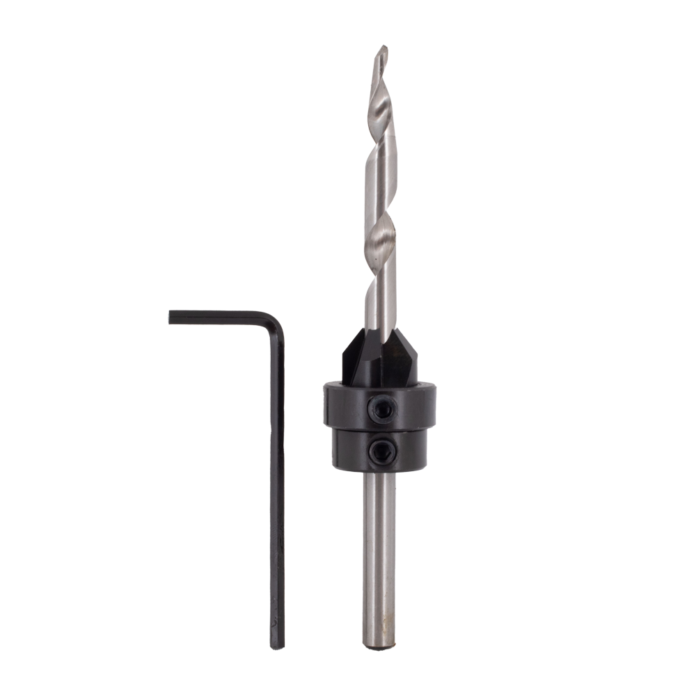 The STAR-M Adjustable Countersink / Bore is a versatile tool that streamlines wood preparation for threads and screw heads in a single operation. With its tapered tips, it ensures a snug fit for classic screws, while the pilot bits' fast pitch design makes quick work of wood. The flute countersink bodies create clean, sharp holes, and the adjustable stop collar permits precise screw head placement, flush with the surface. Crafted from high carbon steel for durability, this tool is best used with electric power drills and cordless drills over 14.4 volts, making it an essential choice for woodworking projects that demand precision and efficiency.