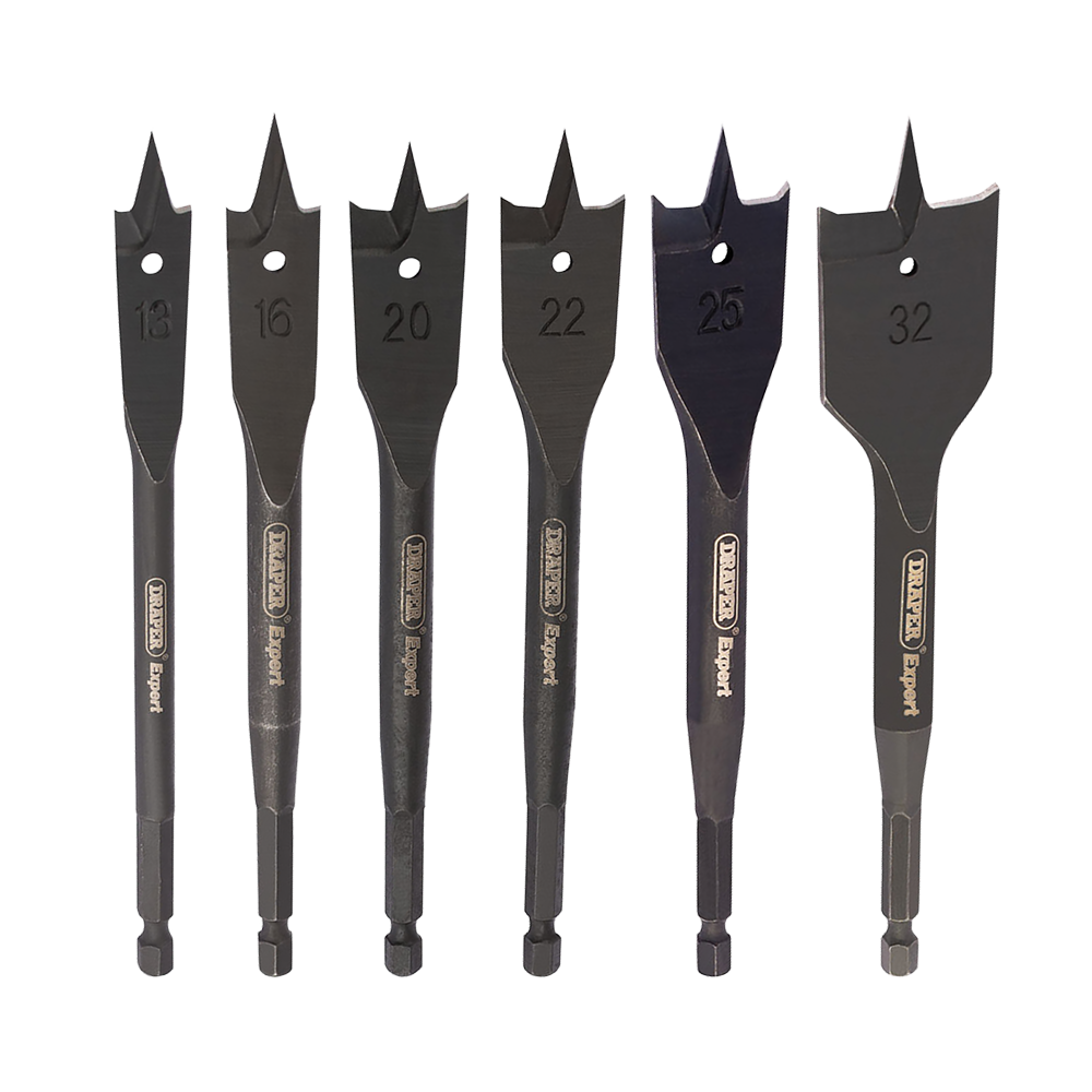 Expert Quality, flat wood bits with a precision ground central point and enhanced design cutting edge spurs, which deliver greater waste removal compared with standard flat wood bits. For use with power drills.