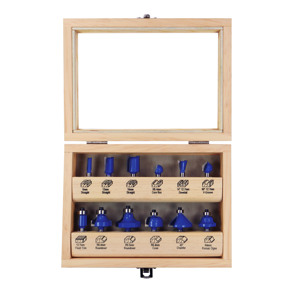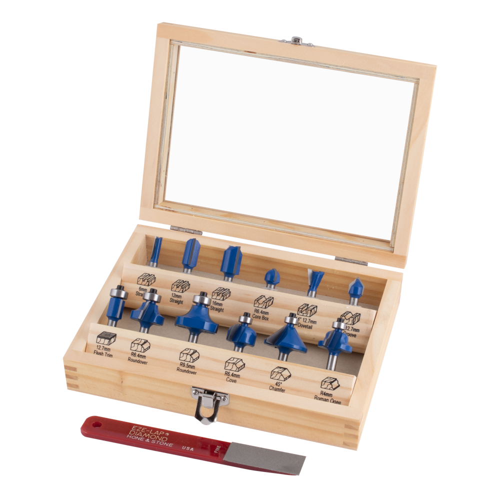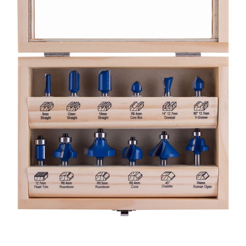 - Set of 12 of the most popular Router Bits.