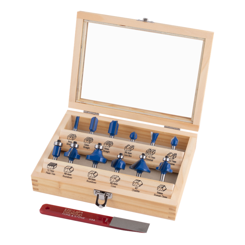 The Econocut 6pc Starter Router Bit Set is a must-have for any handyman or DIY enthusiast. This set includes the 6 most popular router bits, ensuring you have the right tool for various woodworking tasks. The bits are neatly organized in an attractive timber window box that offers excellent storage convenience. With a rotating bit holder, accessing the desired bit becomes a breeze. Featuring a 1/4" shank, which is highly favored among DIY users, all the bits provide a smoother cutting action with their two-flute design. As a bonus, this set includes the EZE-LAP™ Diamond Sharpener, with a fine 600-grit abrasive, perfect for all general sharpening needs with precision and ease.