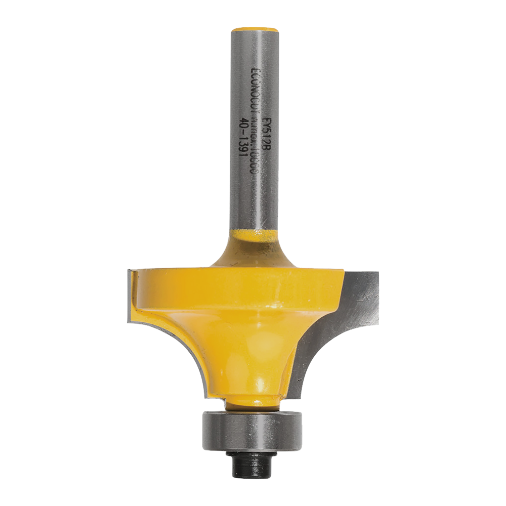 The Econocut Rounding Over Bit with Ball Bearing Guide is a versatile tool for woodworking projects. It creates flush decorative edges perfect for table, drawer, or cabinet edges, as well as small finish moldings. Equipped with a ball bearing guide, it ensures precise and consistent cuts, while the two-flute design provides a smoother cutting action. Made with carbide-tipped material, this bit offers longer-lasting sharpness, superior finish, and cleaner cuts. For the handyman and DIY enthusiasts.