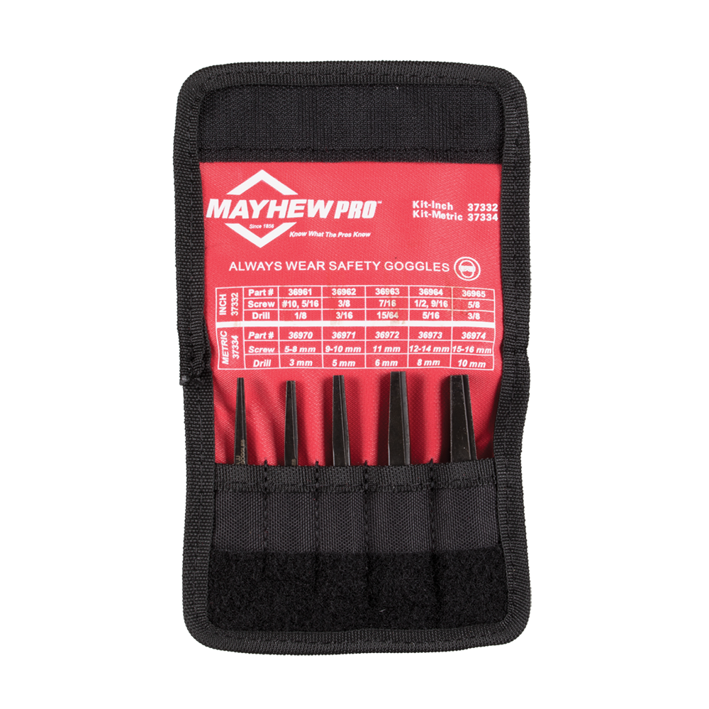 Set of fluted pattern screw extractors supplied in a plastic wallet.