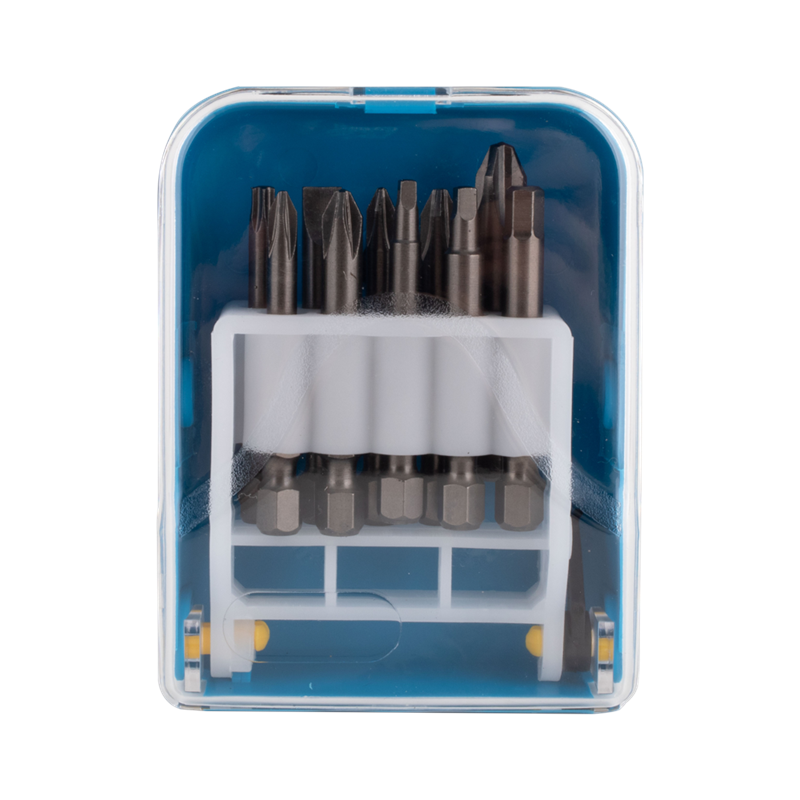 The GFB 17pc Assorted Screwdriver Bit Set is meticulously crafted for tradesmen and professionals, ensuring precision and durability. Manufactured from high-quality steel and tempered twice under intense heat, these Industrial Tough bits are exceptionally strong and long-lasting. Their magnetic feature enhances ease of use, securely gripping screws during intricate tasks. With a 1/4” Hex shank for quick changes, they come neatly organized in a robust plastic storage case. The set includes a mix of Phillips, Square, Hex, Torx, Slotted, PoziDriv bits, Bit holder, socket adaptors and magnetic nutsetters.