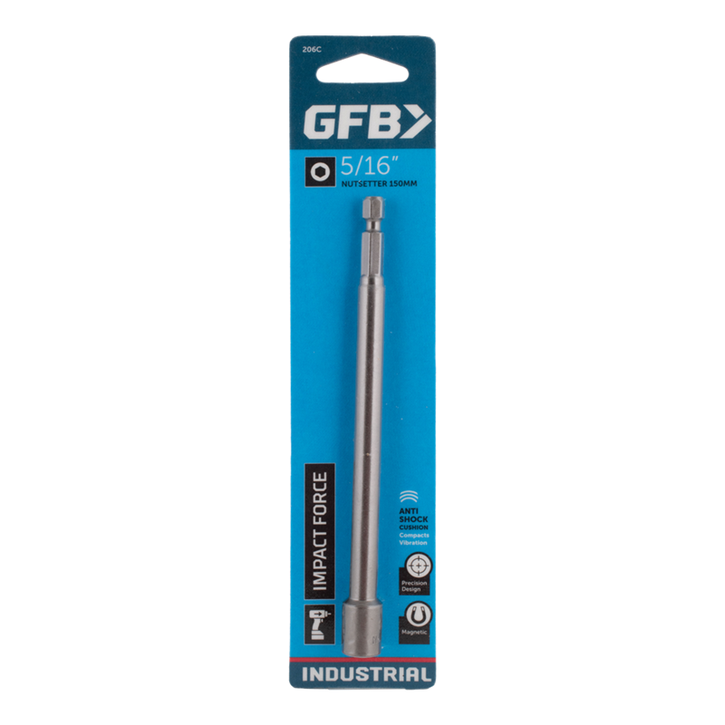 GFB Industrial Tough nutsetters are specifically designed & manufactured to Australian conditions. Rare earth magnets have been used, which means that they are stronger and last longer than standard magnets. GFB nutsetters have a registered design incorporating an anti shock cushion to combat vibration and preserve the integrity of the magnet. Constructed from high tensile steel, GFB nutsetters provide robust performance. The 1/4" hex shank is designed to withstand impact force, making these tools ideal for heavy-duty applications.
