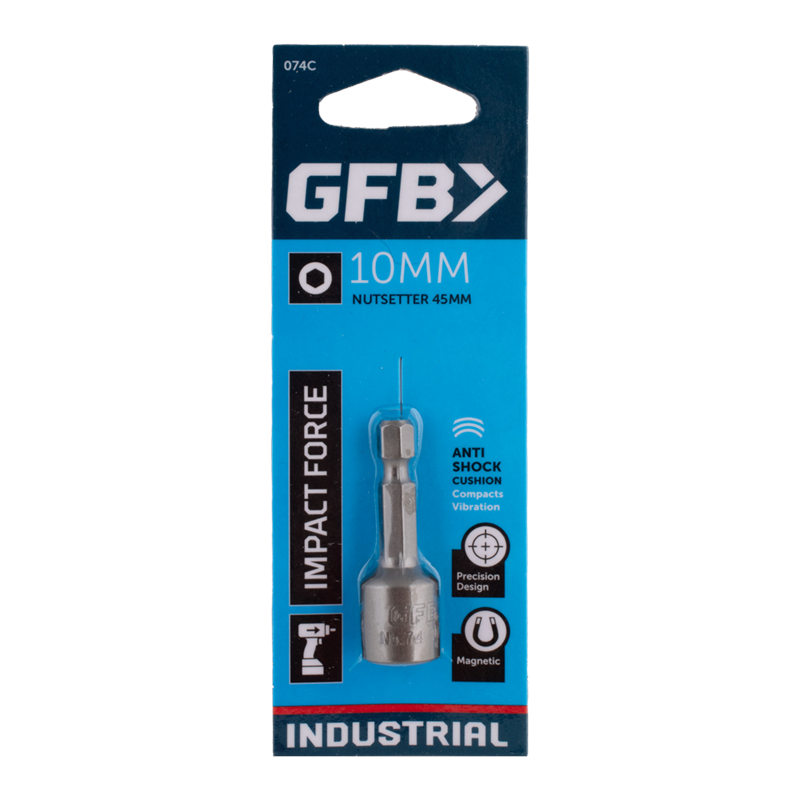 GFB Industrial Tough nutsetters are specifically designed & manufactured to Australian conditions. Rare earth magnets have been used, which means that they are stronger and last longer than standard magnets. GFB nutsetters have a registered design incorporating an anti shock cushion to combat vibration and preserve the integrity of the magnet. Constructed from high tensile steel, GFB nutsetters provide robust performance. The 1/4" hex shank is designed to withstand impact force, making these tools ideal for heavy-duty applications.