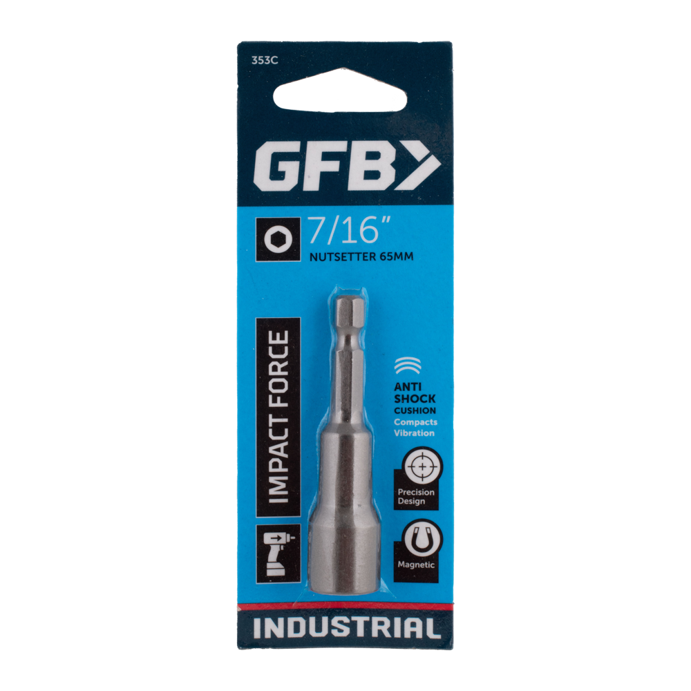 GFB Industrial Tough nutsetters are specifically designed & manufactured to Australian conditions. Rare earth magnets have been used, which means that they are stronger and last longer than standard magnets. GFB nutsetters have a registered design incorporating an anti shock cushion to combat vibration and preserve the integrity of the magnet. Constructed from high tensile steel, GFB nutsetters provide robust performance. The 1/4" hex shank is designed to withstand impact force, making these tools ideal for heavy-duty applications.