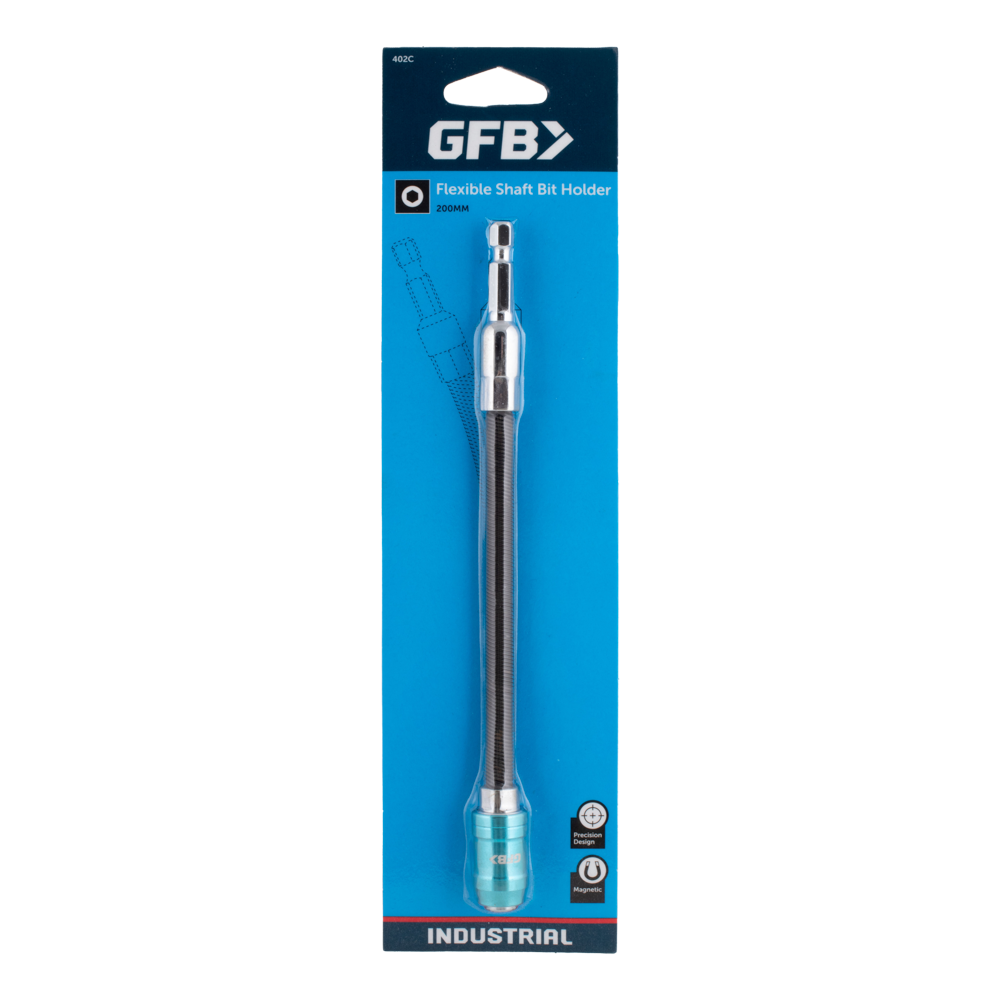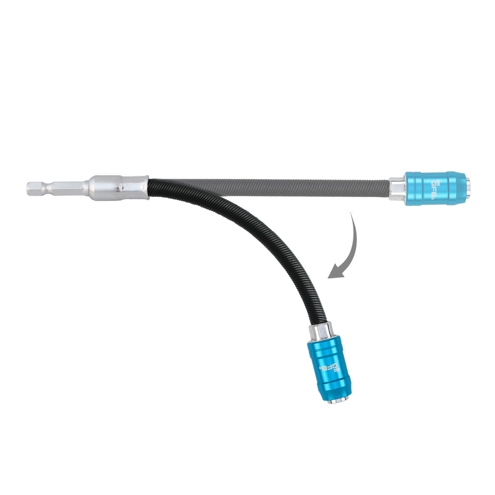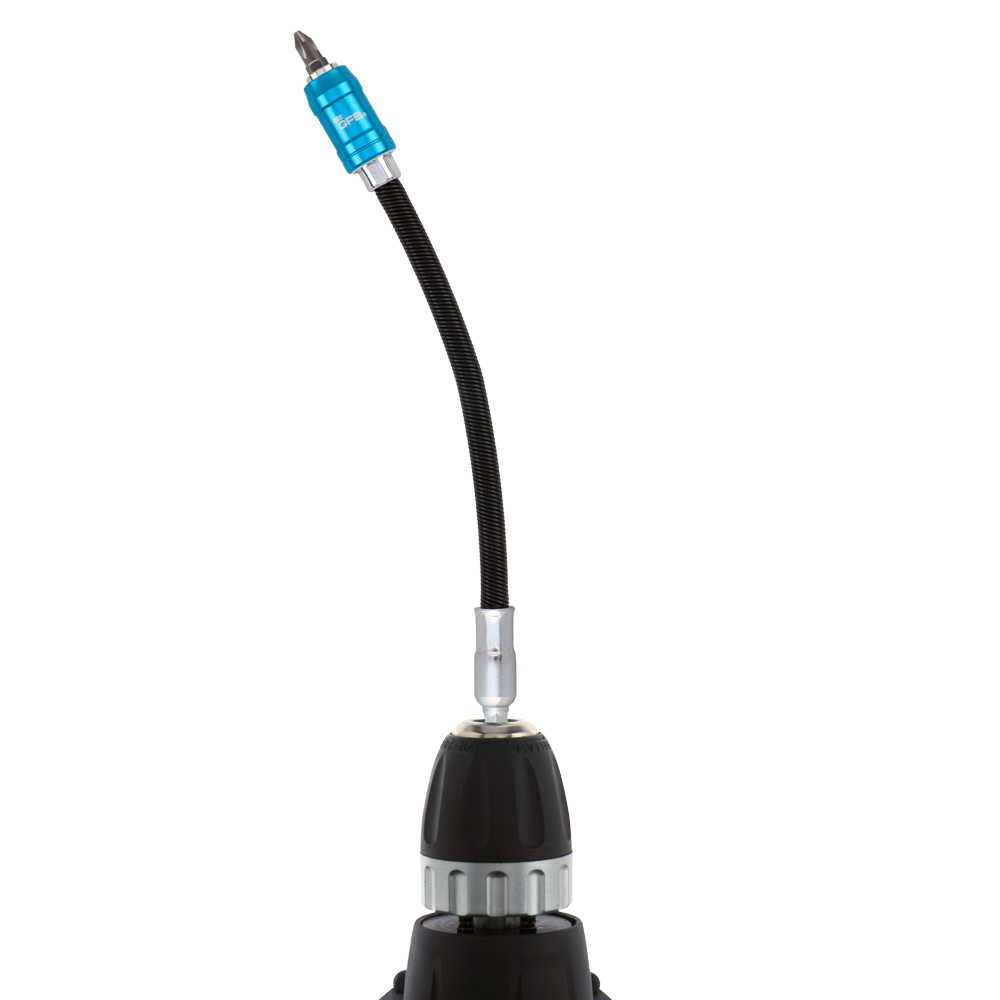 The GFB Flexible Quick Release Bit Holder is an essential tool for tackling hard-to-reach angles with ease. Its flexible shaft provides added length, allowing access to tight spaces effortlessly. The holder features a magnetic and smooth quick release anti-jamming mechanism, ensuring efficient bit changes and secure holding for 1/4" hex shank driver bits. Designed for use in impact drivers, this bit holder is industrially tough and manufactured to the highest specifications, guaranteeing durability and performance in demanding tasks.