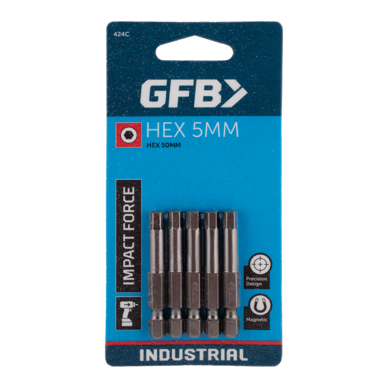The GFB Hex Screwdriver Bits are meticulously crafted for tradesmen and professionals, ensuring precision and durability. Manufactured from high-quality steel and tempered twice under intense heat, these Industrial Tough bits are exceptionally strong and long-lasting. Their magnetic feature enhances ease of use, securely gripping screws during intricate tasks. The Hex design of these bits refers to their hexagonal shape, which provides a snug fit and prevents slipping, ideal for driving screws into various materials with enhanced control and efficiency.
