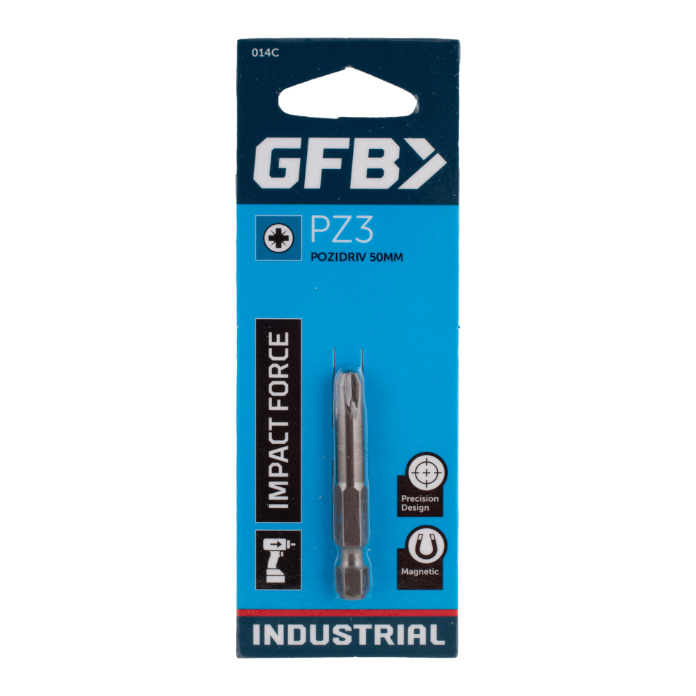 The GFB Pozidriv Screwdriver Bits are meticulously crafted for tradesmen and professionals, ensuring precision and durability. Manufactured from high-quality steel and tempered twice under intense heat, these Industrial Tough bits are exceptionally strong and long-lasting. Their magnetic feature enhances ease of use, securely gripping screws during intricate tasks. The Pozidriv design minimizes cam-out and maximizes torque transfer, ensuring secure and reliable fastening of screws.