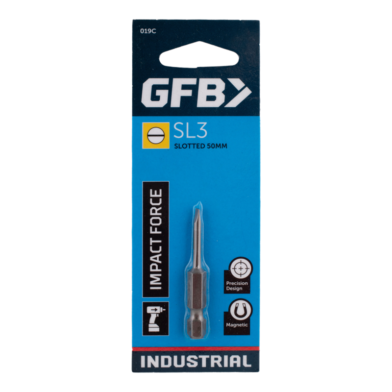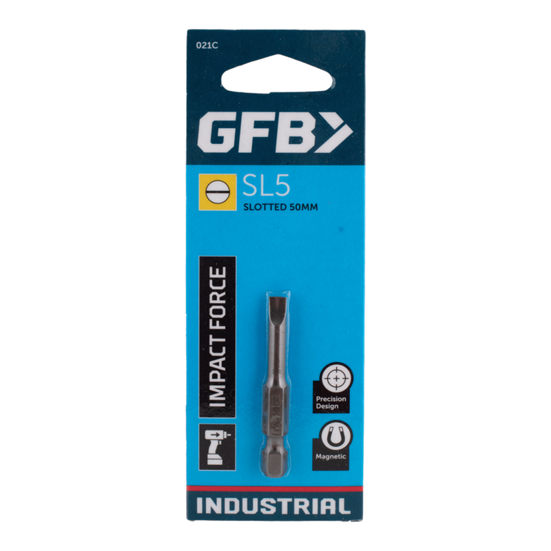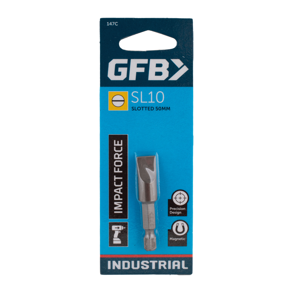 The GFB Slotted Screwdriver Bits are meticulously crafted for tradesmen and professionals, ensuring precision and durability. Manufactured from high-quality steel and tempered twice under intense heat, these Industrial Tough bits are exceptionally strong and long-lasting. Their magnetic feature enhances ease of use, securely gripping screws during intricate tasks. Designed to fit slotted screws, these bits securely engage with the slots, facilitating precise torque application and preventing slippage, making them essential for accurate and efficient screwdriving tasks.
