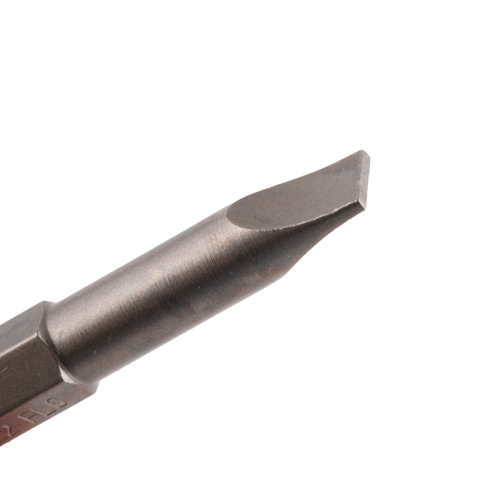 The GFB Slotted Screwdriver Bits are meticulously crafted for tradesmen and professionals, ensuring precision and durability. Manufactured from high-quality steel and tempered twice under intense heat, these Industrial Tough bits are exceptionally strong and long-lasting. Their magnetic feature enhances ease of use, securely gripping screws during intricate tasks. Designed to fit slotted screws, these bits securely engage with the slots, facilitating precise torque application and preventing slippage, making them essential for accurate and efficient screwdriving tasks.