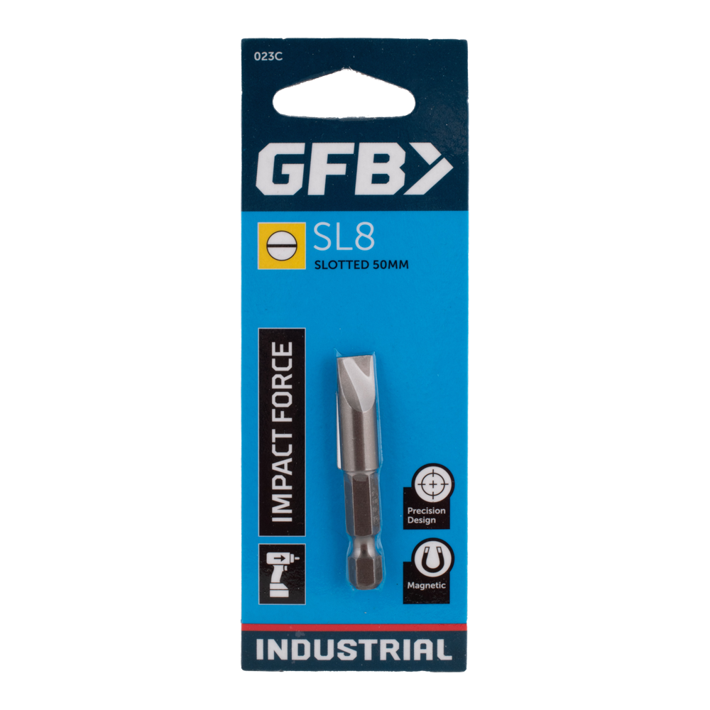 The GFB Slotted Screwdriver Bits are meticulously crafted for tradesmen and professionals, ensuring precision and durability. Manufactured from high-quality steel and tempered twice under intense heat, these Industrial Tough bits are exceptionally strong and long-lasting. Their magnetic feature enhances ease of use, securely gripping screws during intricate tasks. Designed to fit slotted screws, these bits securely engage with the slots, facilitating precise torque application and preventing slippage, making them essential for accurate and efficient screwdriving tasks.