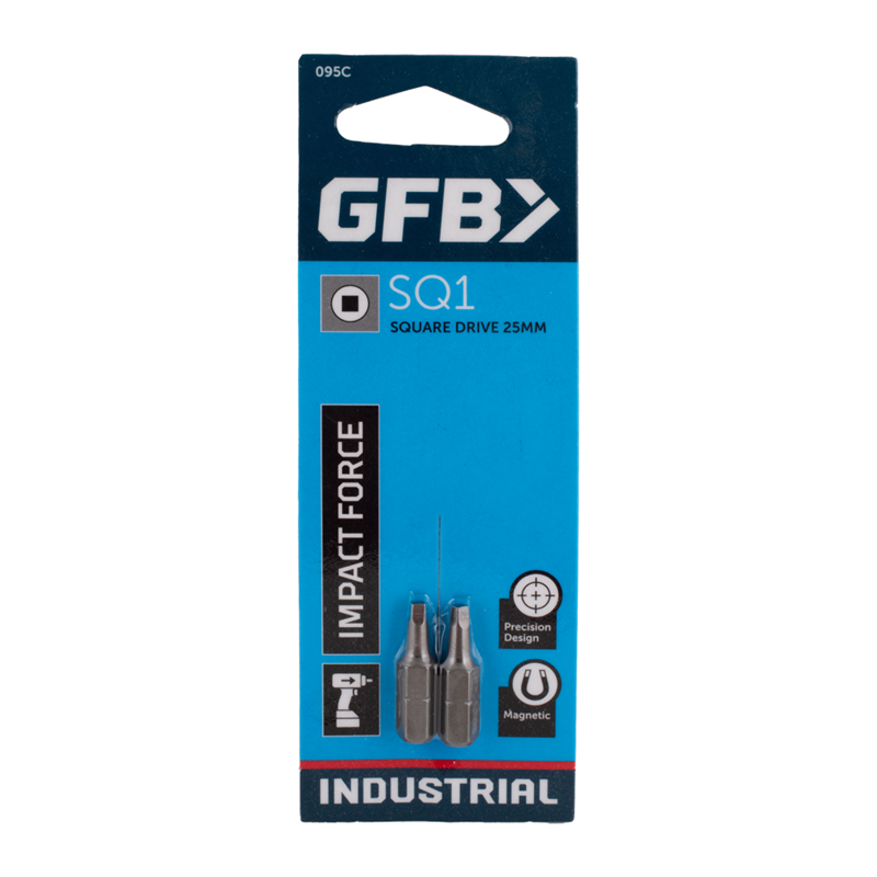 The GFB Square Drive Screwdriver Bits (also known as Robertson) are meticulously crafted for tradesmen and professionals, ensuring precision and durability. Manufactured from high-quality steel and tempered twice under intense heat, these Industrial Tough bits are exceptionally strong and long-lasting. Their magnetic feature enhances ease of use, securely gripping screws during intricate tasks. Their square drive design ensures a secure fit and reduces slipping, ideal for heavy-duty industrial applications.