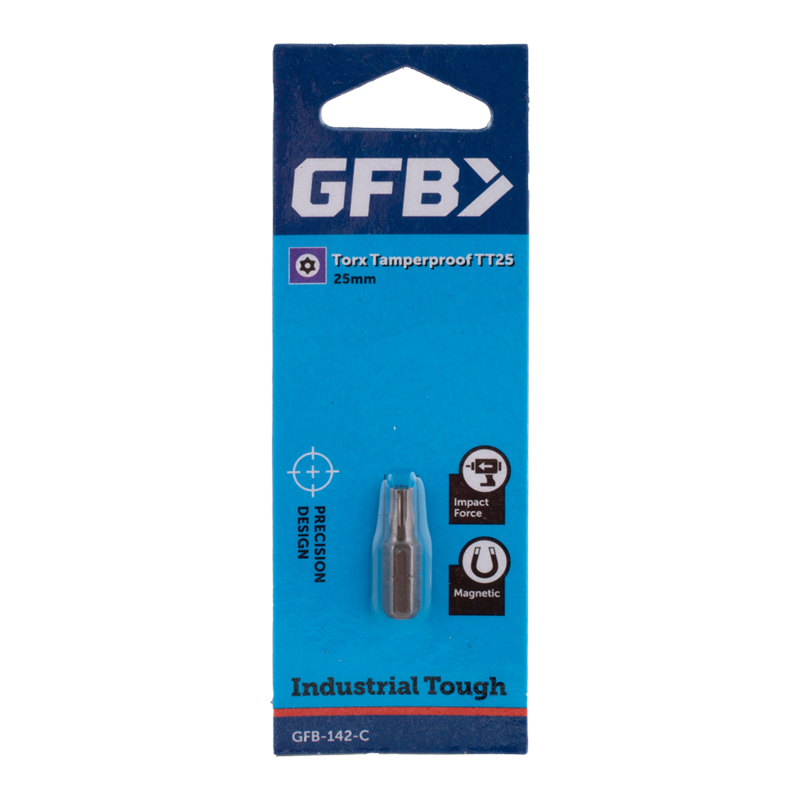 The GFB Torx Tamperproof Screwdriver Bits are meticulously crafted for tradesmen and professionals, ensuring precision and durability. Manufactured from high-quality steel and tempered twice under intense heat, these Industrial Tough bits are exceptionally strong and long-lasting. Their magnetic feature enhances ease of use, securely gripping screws during intricate tasks. Security professionals and locksmiths rely on their Torx Tamper Resistant Security feature, which ensures enhanced safety and prevents unauthorized access, making them indispensable in securing sensitive environments.
