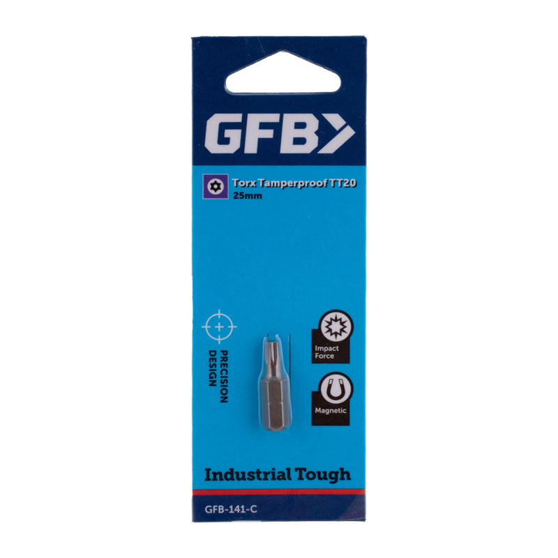 The GFB Torx Tamperproof Screwdriver Bits are meticulously crafted for tradesmen and professionals, ensuring precision and durability. Manufactured from high-quality steel and tempered twice under intense heat, these Industrial Tough bits are exceptionally strong and long-lasting. Their magnetic feature enhances ease of use, securely gripping screws during intricate tasks. Security professionals and locksmiths rely on their Torx Tamper Resistant Security feature, which ensures enhanced safety and prevents unauthorized access, making them indispensable in securing sensitive environments.