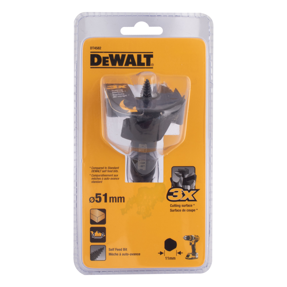 DeWalt Self Feed Drill Bits are the go-to solution for anyone seeking rapid, clean, and precise hole drilling in hardwood, softwood, wooden boards, and plaster boards. Compatible with both corded and cordless drills, these bits boast an 11mm anti-slip shank, ensuring stability during operation. What sets these bits apart is their threaded pilot point, which effortlessly guides the forstner bit through the material, enhancing accuracy and efficiency. With three extra-sharp cutting edges, they are designed for swift and precise hole creation. Plus, the package includes a replacement pilot drill and a Hex key, making them even more practical for the discerning user. When you need dependable performance and versatility in your drilling tasks, DeWalt Self Feed Drill Bits deliver every time.