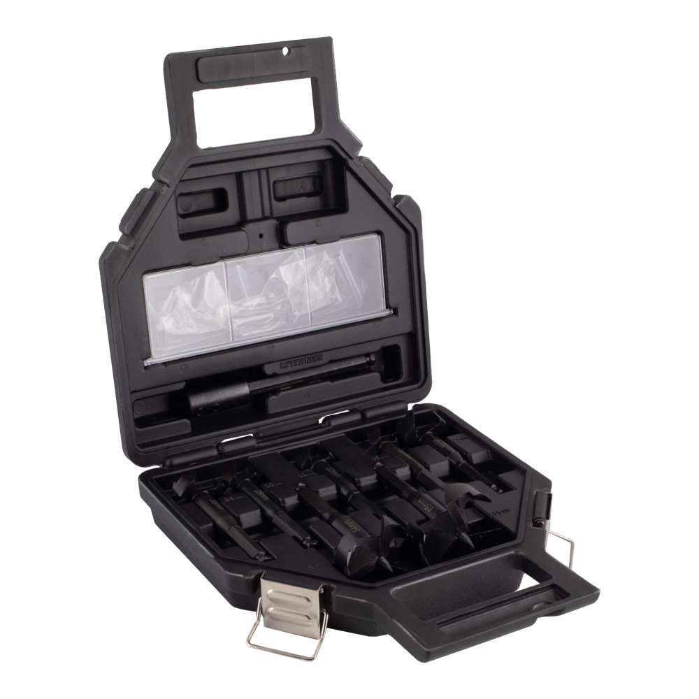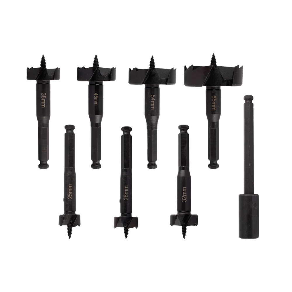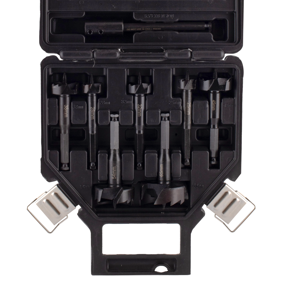 The DeWalt Heavy Duty Self-Feed Bit Set is a must-have for any woodworking enthusiast or professional. This comprehensive set includes a range of sizes, including 25mm, 28mm, 32mm, 38mm, 45mm, 54mm, 65mm and comes with a 140mm Hex Extension Bit, providing versatility for various drilling needs. With its optimized cutting angle and open tooth design, these bits offer exceptional durability and easy resharpening, ensuring a longer bit life. The 11mm quick change shank allows for efficient material penetration, making rapid drilling of clean and accurate holes in hardwood, softwood, and wooden boards a breeze. Compatible with both corded and cordless drills, the threaded Pilot Point enhances accuracy by effortlessly guiding the bit through the material. Invest in this set for precision and durability in your woodworking projects.