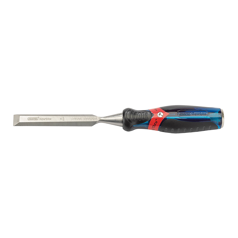 Full length bevel edged blades manufactured from chrome vanadium steel hardened; tempered and finely ground. Solid Impact-resistant soft grip handle allows Pound Thru striking end cap to be struck without causing damage.
