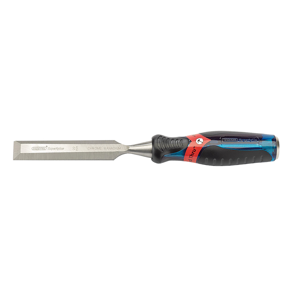 Full length bevel edged blades manufactured from chrome vanadium steel hardened; tempered and finely ground. Solid Impact-resistant soft grip handle allows Pound Thru striking end cap to be struck without causing damage.