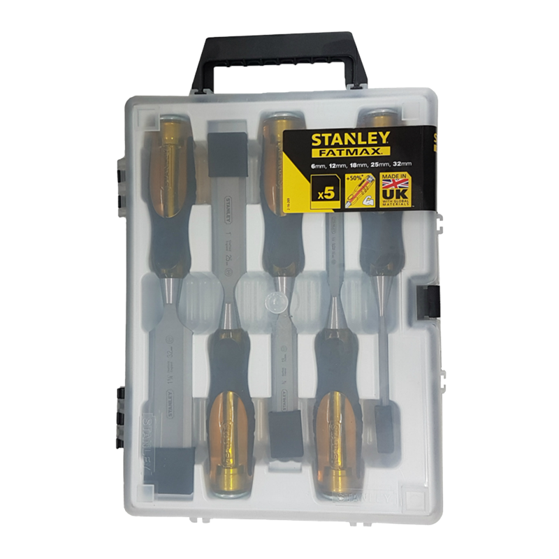 Expert Quality full length bevel edged blades manufactured from chrome vanadium steel hardened and tempered. Impact-resistant soft grip polypropylene handles with striking end cap and Tang. All blades have blade guards. Display packed.