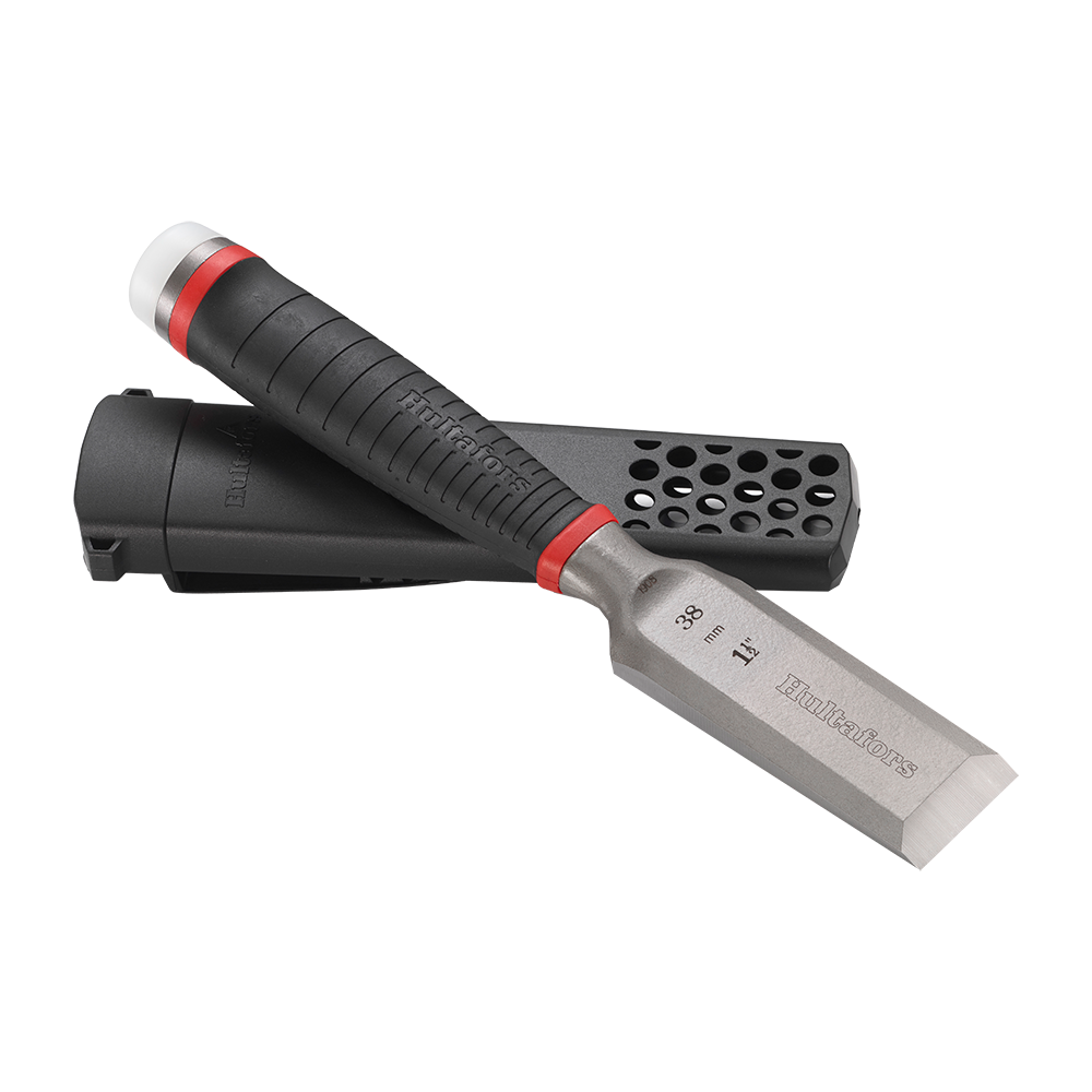 Chisels for tasks that require strength and precision. Forged in one piece with continuous robust I-profile for extreme breaking strength and to maximize the power transmission down into the workpiece. Impact resistant nylon striker that can be replaced when worn down. 25° cutting edge for an optimal ratio between sharpness and durability. The entire blade, including the handle, can be placed flat against the surface which allows you to cut parallel to a flat surface.