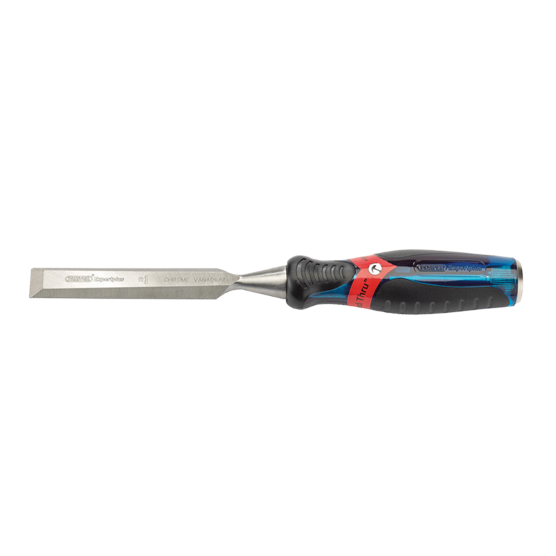 18mm blade width chisel with a shatterproof polymer handle incorporating a steel striking cap; and is resistant to most solvents. The bevel edged blade is manufactured from high quality EN31 grade steel.
