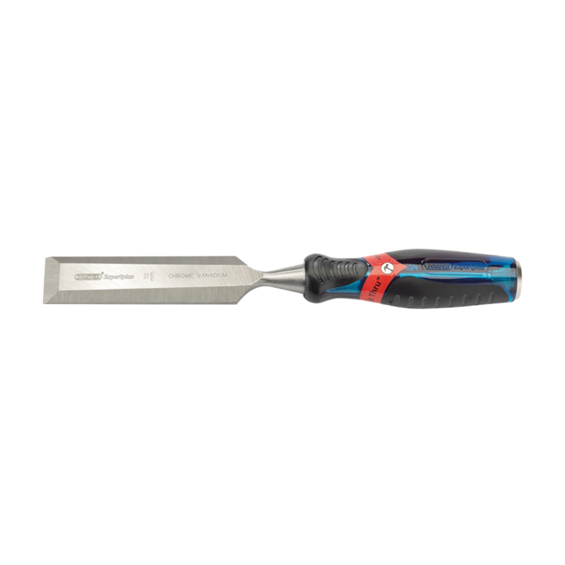 32mm blade width chisel with a shatterproof polymer handle incorporating a steel striking cap; and is resistant to most solvents. The bevel edged blade is manufactured from high quality EN31 grade steel.