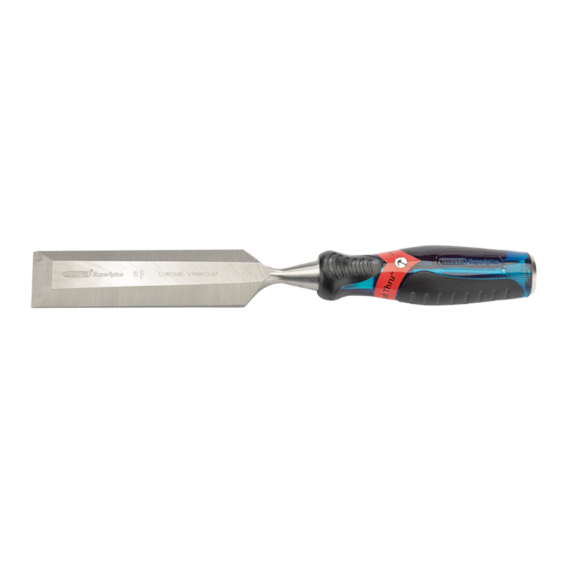 38mm blade width chisel with a shatterproof polymer handle incorporating a steel striking cap; and is resistant to most solvents. The bevel edged blade is manufactured from high quality EN31 grade steel.