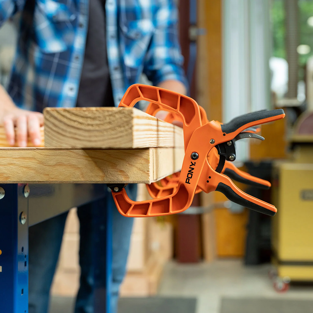 Pony hand clamps feature an innovative box?joint design that prevents twisting and keeps the jaws square and straight. Our patented adjustment mechanism allows you to adjust clamping pressure to your desired needs without any additional tools. The soft, pivoting jaw pads are ideal for holding delicate work and are riveted to the jaws to ensure they never come off. Soft handles are ergonomically designed for comfortable use.