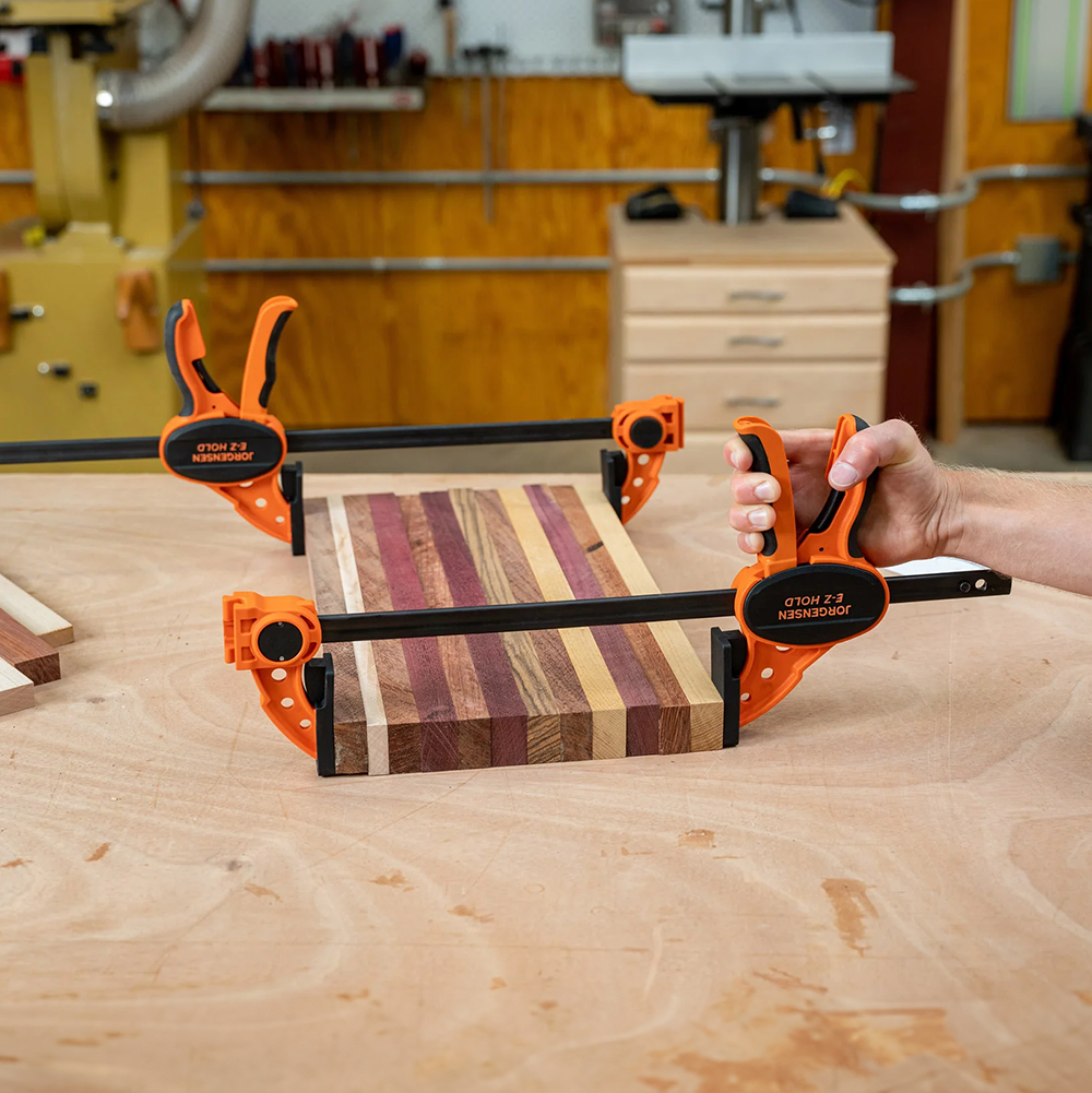“Look, Ma! One hand!” Introducing the innovative Jorgensen E-Z HOLD Medium-duty bar clamps that offer effortless clamping with just one hand. These versatile clamps can also be transformed into spreader clamps for added convenience. With a contoured comfort grip and a quick-release lever, achieving a secure hold is a breeze. What sets these clamps apart is their exclusive patented feature, allowing you to connect two clamps together, effectively doubling the opening capacity compared to a single clamp. The deep-reach pads ensure optimal protection for your workpiece, making these clamps a must-have for any project.