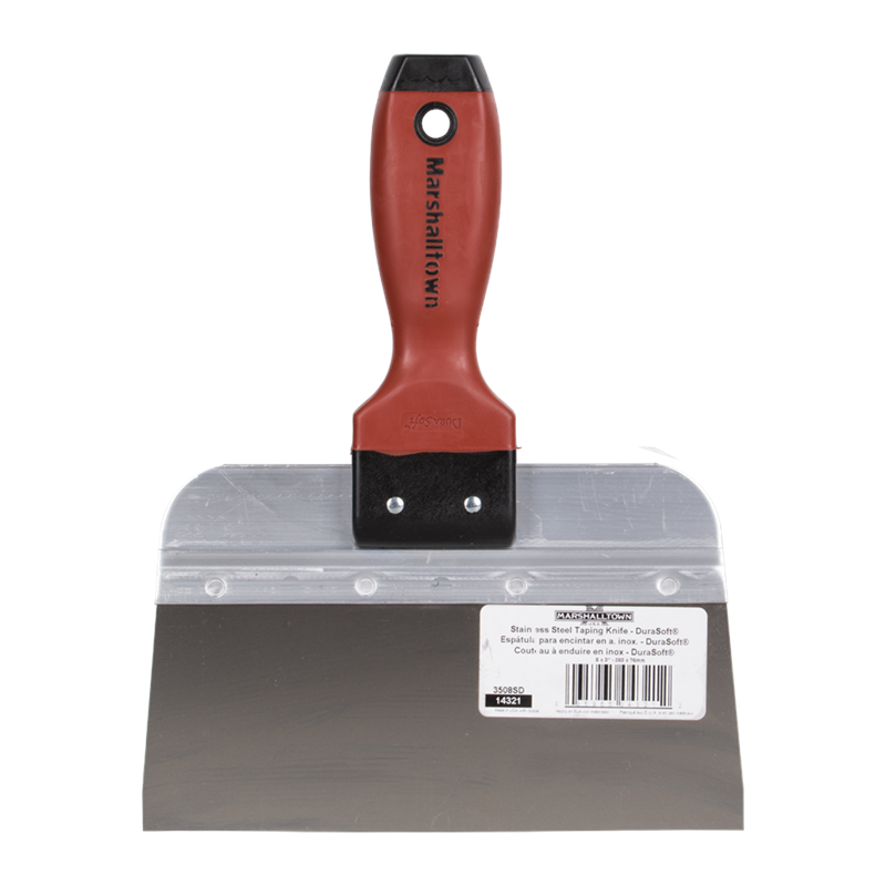 This professional Ragni taping knife has a 200mm (8") top-grade Japanese stainless steel blade with a strong aluminium backing. This offers strength along the full length of the blade and great flexibility while operating. The blade, made from high-quality stainless steel helps to resist rusting, gives great flexibility, and increases durability, as it is very hard and long lasting. This taping knife is perfect for your next drywall job! It's great for applying mud, finishing, laying tape, and more. It's large blade is designed specifically for scooping and spreading drywall mud onto seams and joints between panels.