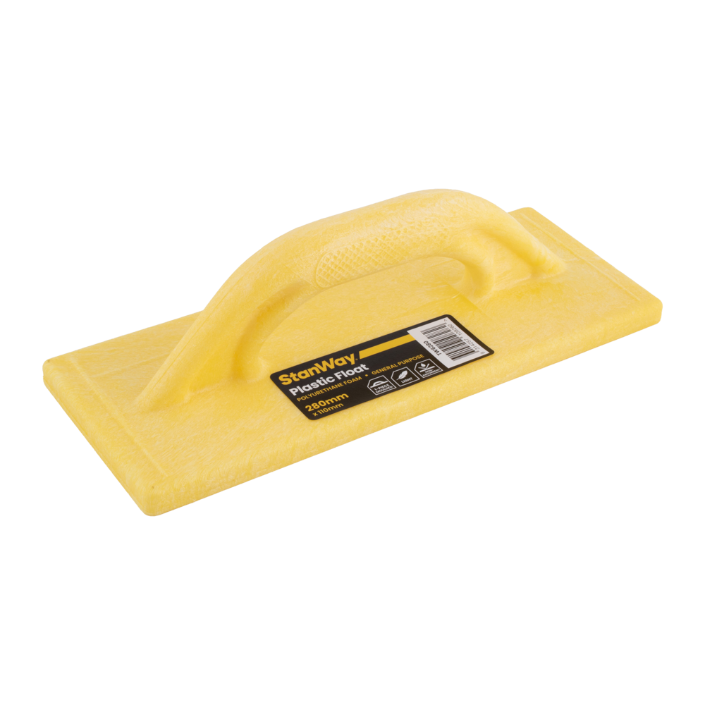 The Stanway Plastic Floats are the perfect tools for your next finishing job! Made from a high quality polyurethane foam plastic makes this float lightweight, hard wearing, and that is will not warp under load. The one piece moulded design adds strength and durability - these don’t wear as quick as cheap replicas. This float is used for general purpose, such as applying and texturing plasters, concrete, and renders. This float has a slight textured face, best used for floating plaster. Plaster or render will not be sucked off the wall by the surfaces of this plastic float because they are non-absorbent.