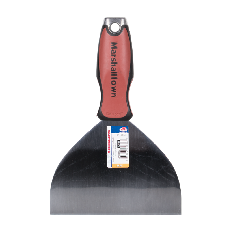 Goldblatt Putty & Joint Knives feature premium hollow-ground stainless steel blades, offering excellent flexibility and feel for perfect feathering, smoothing, and finishing of drywall seams. The high-quality stainless steel is rust-resistant, easy to clean, and polished to a mirror finish. Designed for comfort and control, the extra-large over-mould soft-grip handle reduces fatigue and provides improved leverage, with a convenient hanging hole for easy storage. A durable metal hammer end allows for setting popped nails and screws, making these knives ideal for professional and DIY drywall work.