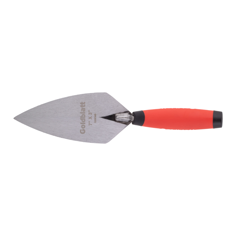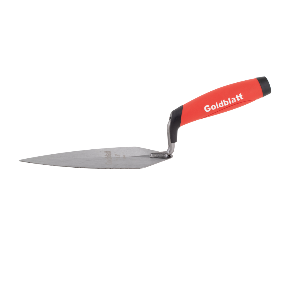The Goldblatt Pointing Trowel is built from high-grade tool steel that is heat-treated and tempered for long-lasting durability and strength. Its precisely taper-ground blade provides excellent balance and flexibility, while the high-strength two-piece welded blade and handle ensure reliable performance on the job. Designed for versatility, this trowel is ideal for patching cracks and shaping joints in brick, stone, and concrete block. The ergonomic Pro Soft Grip handle offers a firm, comfortable hold, allowing for improved control during detailed masonry work.