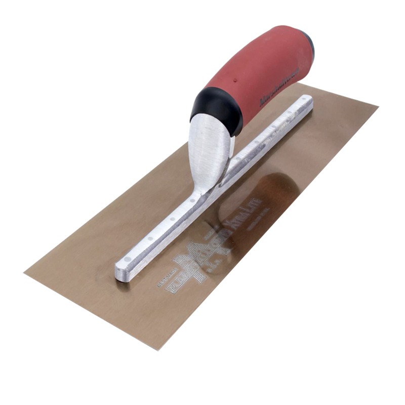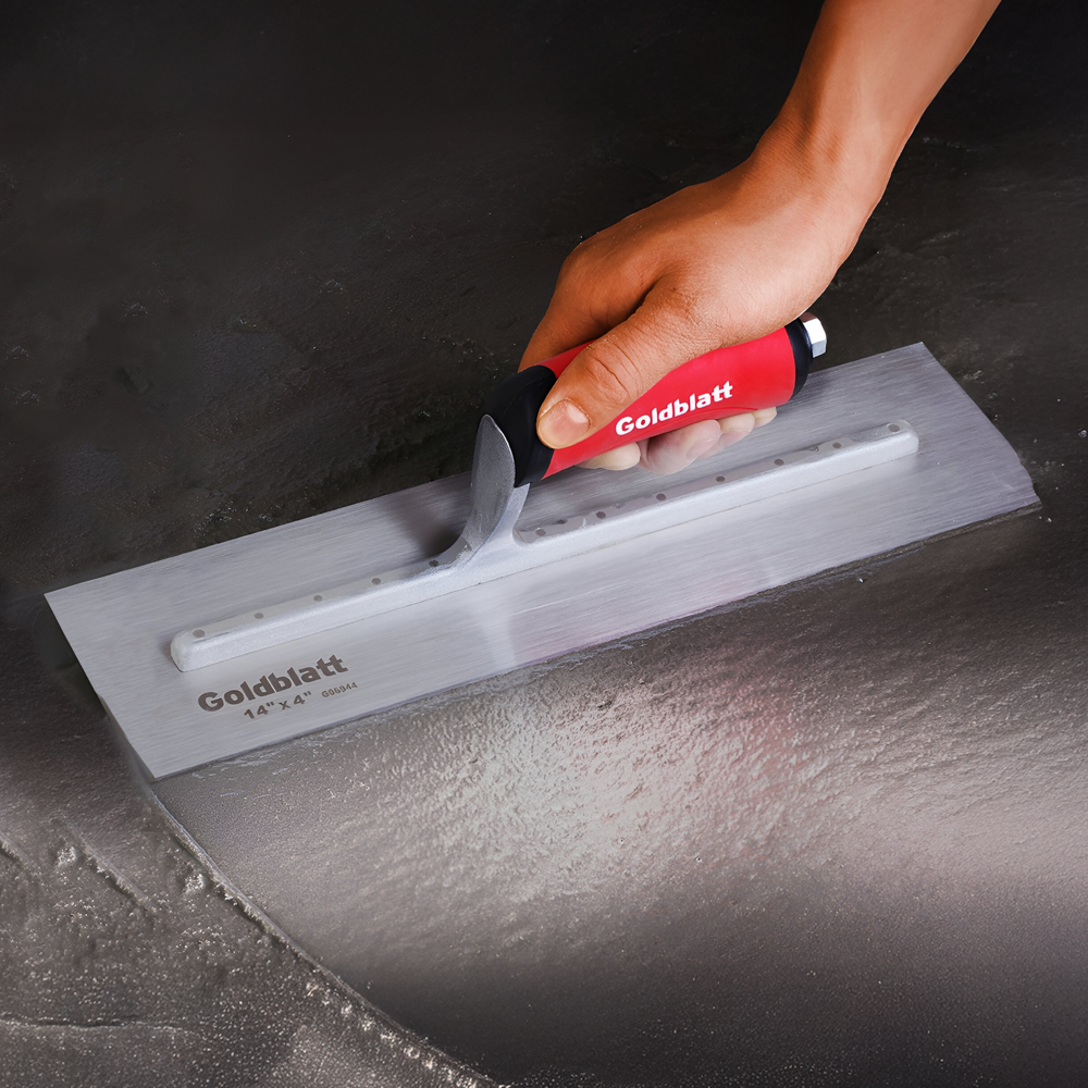 The Goldblatt Finishing Trowel is designed for professional tradesmen who demand precision and durability. Its flexible yet durable spring-steel blade is hardened, tempered, and fastened with stainless-steel rivets for long-lasting performance. A special cross-ground blade with bevel-ground edges delivers a smooth, premium finish with no aggregate popping, helping both pros and beginners work more efficiently. The ultra-strong aluminium-alloy mounting keeps the tool sturdy yet lightweight, while the ergonomic Pro Soft Grip handle provides a firm, comfortable hold and helps reduce fatigue.