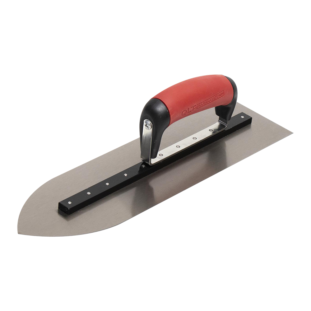 The contractor-grade, QLT Pointed Finishing Trowel is perfect for concrete or flooring finishers who want a more versatile trowel. Its pointed working-end design allows you to finish hard to reach areas and tight corners for a consistent, high-quality finish. This tool is constructed from a tempered high carbon steel and comes fitted with a heavy-duty aluminum mounting and comfortable, soft D-grip handle.