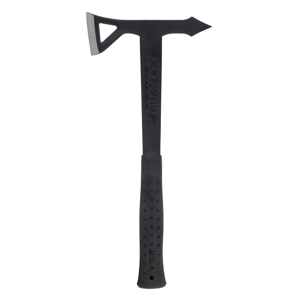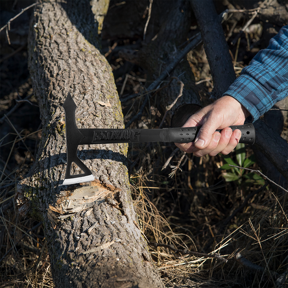 The Estwing Black Eagle Tomahawk Axe is designed for sportsmen, outdoorsmen, and military professionals seeking a lightweight yet powerful tool. Forged in one piece from genuine American steel, it offers unmatched strength and durability. The hand-sharpened edge and pointed tip make it ideal for cutting, chopping, clearing, and breaching tasks. Its perfectly balanced design ensures precision and control, while the patented Shock Reduction Grip® reduces impact vibration by up to 70% for added comfort. Made in the U.S.A., it includes a durable black nylon sheath with belt loop for safe and easy carrying.