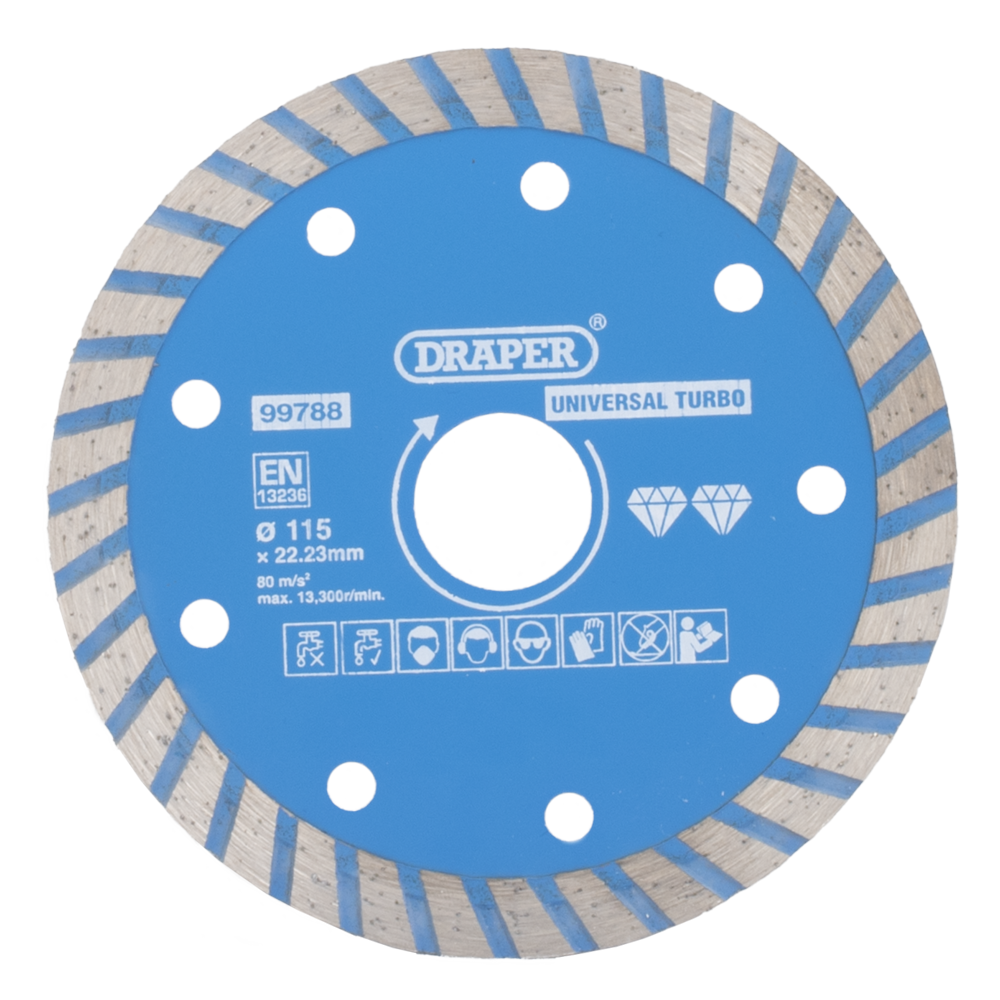Hardened and tempered diamond blade with continuous turbo rim for a fast cut and smooth finish. For use on granite, marble and stone. Suitable for dry and wet cutting, with optimum results when used wet. Compatible with most angle grinders with a 22.23mm bore.