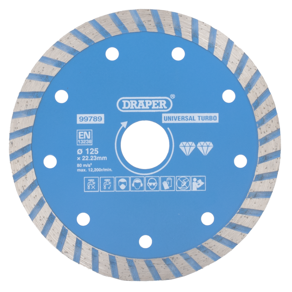 Hardened and tempered diamond blade with continuous turbo rim for a fast cut and smooth finish. For use on granite, marble and stone. Suitable for dry and wet cutting, with optimum results when used wet. Compatible with most angle grinders with a 22.23mm bore.