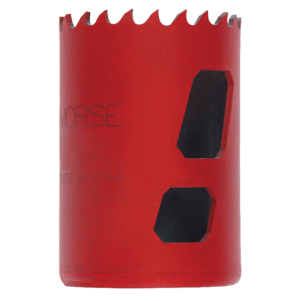 The Morse Bi-Metal Hole Saw features a patented tooth set design that delivers faster hole cutting. The saw’s solid cap minimizes runout and vibration for a more accurate cut. With a cutting depth of 1–15/16?, the saws are designed for general purpose use across a wide range of materials including wood, plastic, machinable metals, stainless steel alloys, and nail-embedded wood. An enhanced side slot offers increased leverage for faster and easier slug removal. Bi-Metal Hole Saws are proudly made in the USA. Arbor required (is not included).